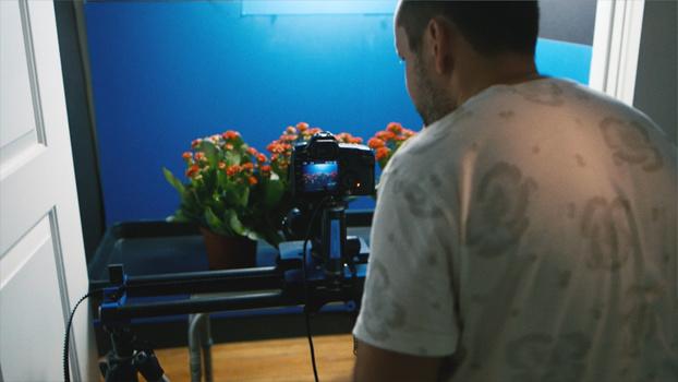 While the final video is light and beautiful, there were many difficult challenges being worked through behind the scenes. After he already began work on this project, he discovered that many of his flowers looked more interesting blooming from above rather than from the side, and thus changing the direction of the video continuing forward. "This added a huge technical challenge because I had to add a 90 percent tilt into the piece," said Scott. His work with the horizontal movement was already difficult, and adding in an angle change to start filming from above took it over the top.