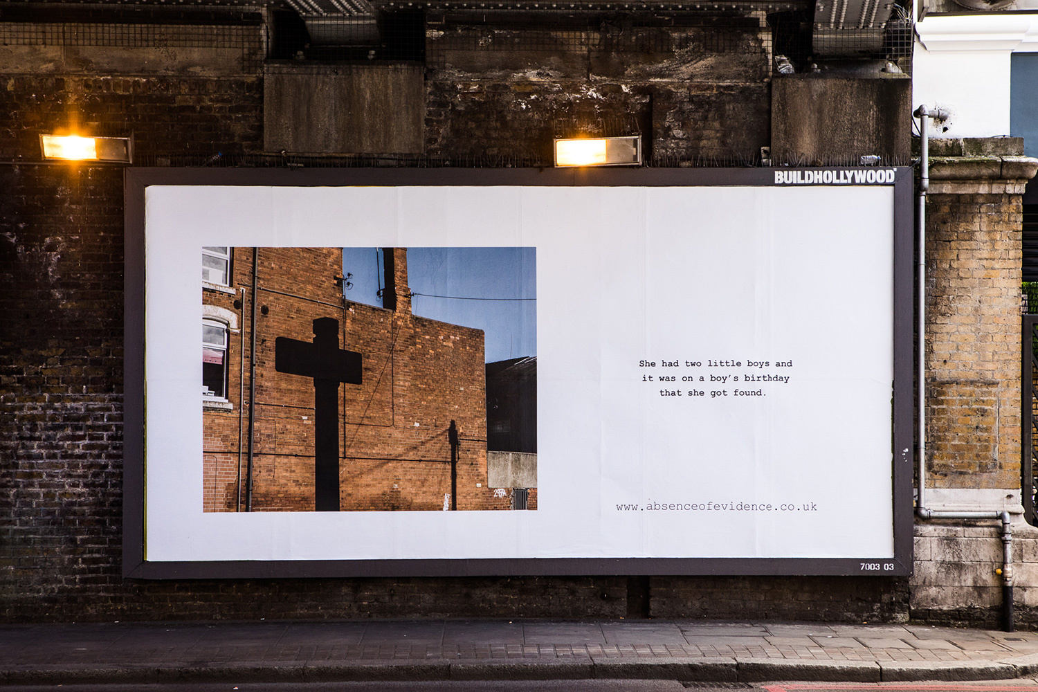 In July, artistic duo Henry/Bragg published photographs around the English city of Hull on billboards and bus shelters and through a silent, hand-held exhibition in the city center that protested against recent legislation in the city that had pushed sex workers to operate in more dangerous locations. The photographs — entitled "Absence of Evidence" — were produced in collaboration with a group of former sex workers (An Untold Story — Voices) and depict locations where the women awaited customers, several of which were also sites where sex workers experienced violence or were found murdered. The photographs are accompanied by brief captions that give insights into the dangers of such work. “She had two little boys,” one caption reads, “and it was on a boy’s birthday that she got found.”