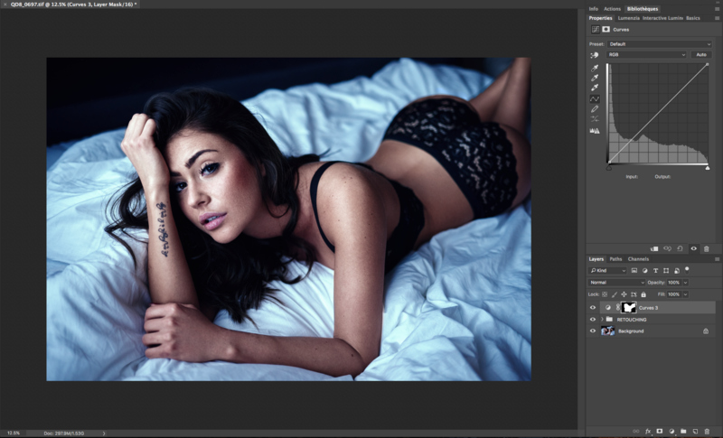 The option is found on any layer that can have a mask. Let’s create a curve layer on my image to add a bit of vignette. I’m going first to create a selection around my model and then create the adjustment layer I need.