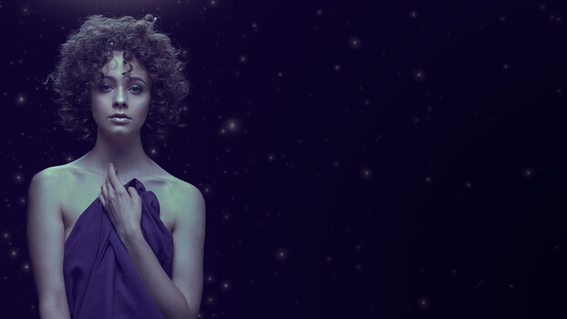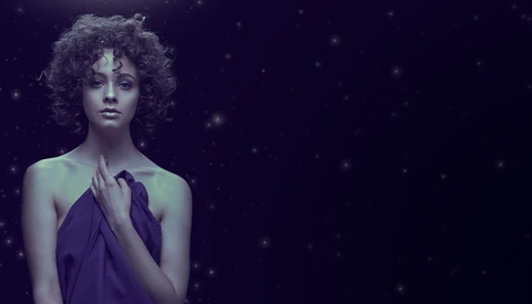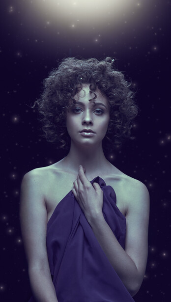This two light overhead setup gave me exactly the look I was hoping for: a glowing moon goddess bathing in celestial light. The image was finished by adding some color contrast to the highlights and a few distant stars to complete the sense of place.