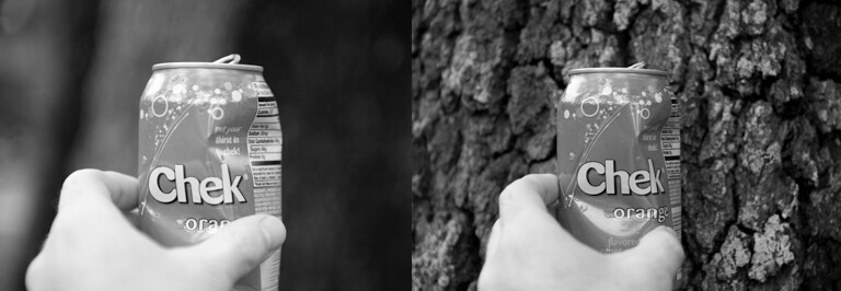 These images above were both shot at f/5.6. The can is about two feet in front of the camera, so by keeping the subject relatively close to the camera and by keeping the background elements further away, we can achieve the shallow depth of field look even at mid-range aperture settings, like f/5.6.