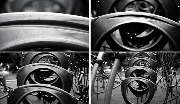 The set of four images in this articles header illustrate how the same aperture setting (all of them at f/2.8) can create a different depth of field. The closer the camera is to the subject, the less is in focus behind the subject. As we pull back you start to see that more and more of the playground rings are in focus.
