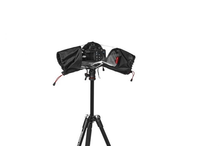 The Manfrotto cover is made with a huge plastic panel that covers most of the back and top of the camera. This certainly makes using the two hand-access sleeves very easy. For those that have trouble using their controls without being able to see them, this will help. However, there isn’t a buttonhole for the eyepiece so you need to look through the plastic panel to see through your eyepiece. This makes manual focusing or seeing in darker environments a bit trickier to use for critical moments.