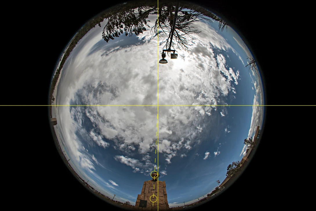 Back in the day this either required tiny measuring tools, negative masks in the enlarger, or highly accurate image enlargement. Today's photo editing software makes this step a breeze. This can be done in Photoshop, as an example. I find it even easier to do this work in Affinity Designer or Adobe Illustrator, however. The center point will be the basis for most of our calculations. The center point, for reference, is also the zenith if the lens has been aligned properly.