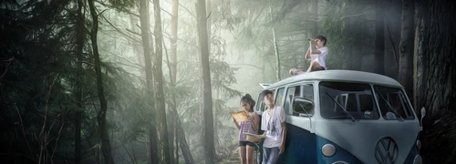 These are, again, multiple misaligned exposures merged in Photoshop. In both cases, the dramatic sundown sky was photographed through tree branches.