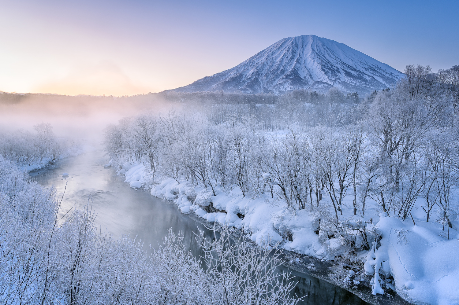The river in the early morning, which was very cold, was filled with fog, and the trees were covered with hoarfrost, creating a beautiful white world.
