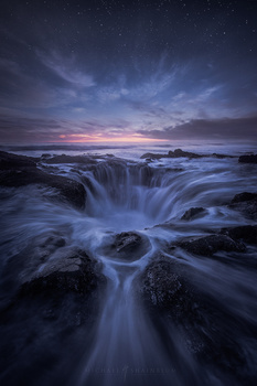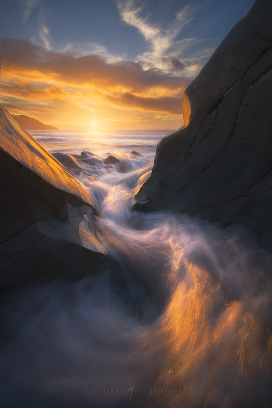 It was a little tough with the water flowing heavily into this crevasse, it was a constant battle of keeping the lens waterspot-free, which is close to impossible in situations like this. I also had to work quick because the tides were rising and the only was out of this area is the opening shown in the photograph.
