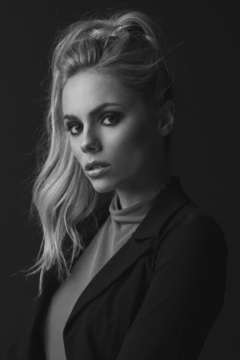 Portrait of Megan using 1 light in a 72" deep parabolic umbrella with diffusion panel.