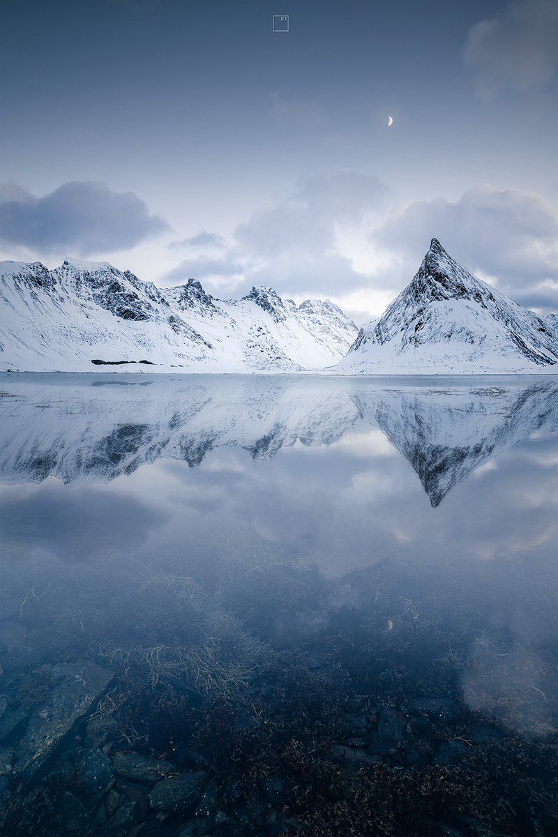 Moody blue hour reflections in one of the many impressive fjords of the lofoten archipelago...