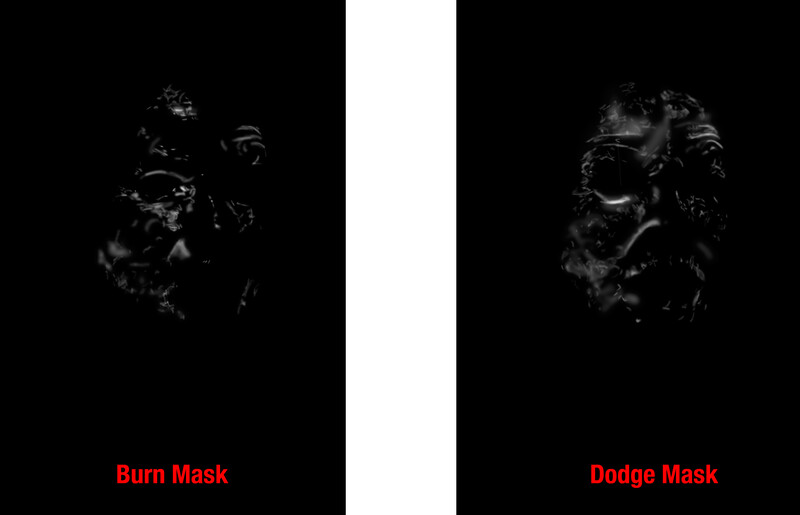 These horror masks show just the painting on the dodge and burn layers so you can see exactly what was done.