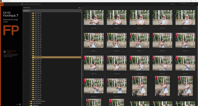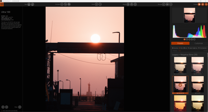 When using it alone, you start with its browser for navigating images. A double click on an image opens it into the film emulation presets; it can open raw files and apply the presets to them.