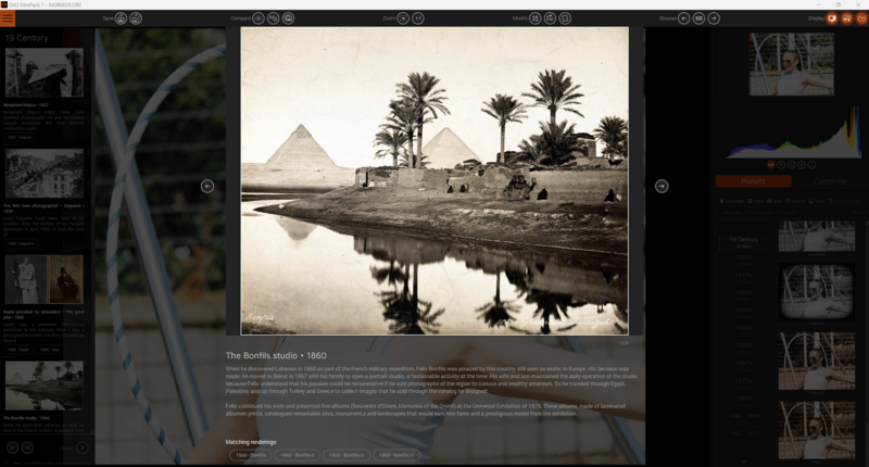 Within the Presets section are 58 negative film, 39 slide film, 39 designer, 39 digital, 6 cinematic, plus 104 Time Machine presets, equaling 285 presets in total. The Time Machine is fascinating as it not only matches the rendering from various points over the last 200 years but gives a history lesson with each one.