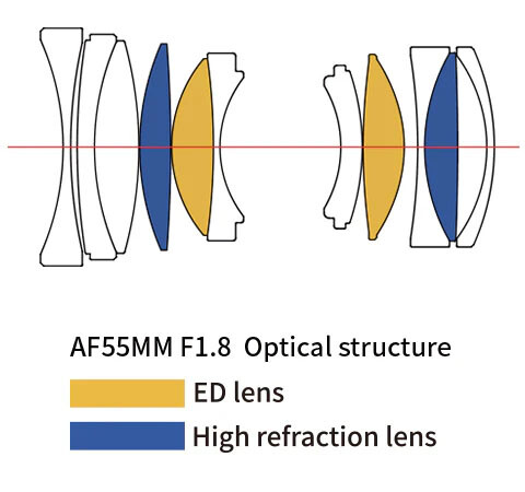 Inside the lens is a surprisingly complex optical formula for a mid-length prime lens, with 11 elements in 8 groups. The concave front element is a bit of a unique option, and while it is multilayer-coated, it might be more difficult to clean compared to a flat element. Deeper in the lens are two ED elements, two high-refraction elements, and an “ultra-high refraction” element, which speaks to a greater degree of lens design complexity than other primes at this price point.