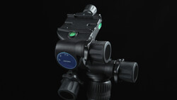 The GX25 aluminum ballhead is dual panning with a Swiss-Arca style quick-release plate. It has “Safe Locking Controls,” with stops that avoid the plate sliding off, plus a pull and twist release button to avoid accidental loosening. It has a dual panoramic pan head, with the second positioned above the ball mount, so a horizontal rotation can be achieved even if the tripod is not level.