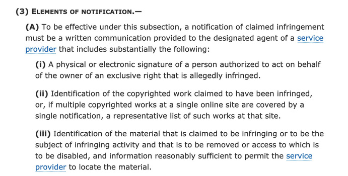 To the typical Instagram user, this might seem like a reasonable request. You can imagine that Instagram wants to be sure that takedown notices are not spurious or frivolous and that the person claiming to be the copyright holder is genuine. However, this is not what the legislation requires; by contrast, with the information that has been submitted, Instagram is now obliged to remove or disable access to the content without any delay — or “expeditiously” as is written in USC § 512. The platform is not supposed to send out another email asking for more information, as under U.S. law, the takedown notice is complete and Instagram has a statutory obligation to take action. Failure to do so has implications.