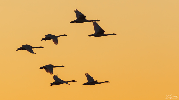 Swans in the Sunset