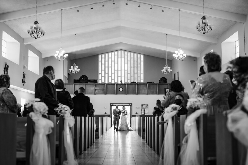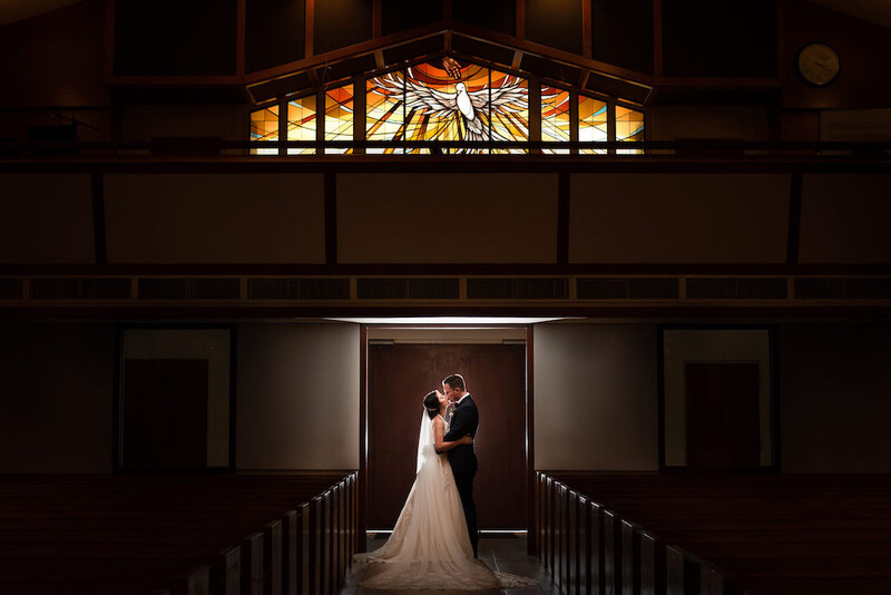 Similar to roads and paths, a church or wedding ceremony aisle creates a natural leading line for wedding photographers to use in their compositions.