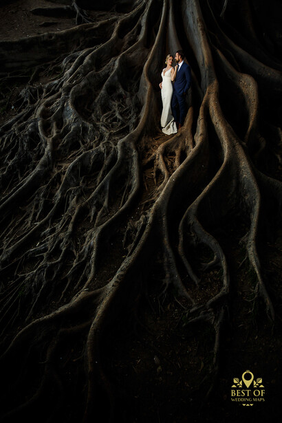 Photo by Andreas Pollok (Website | Wedding Maps Profile)With the intentional placement of a tree, branch, or root in the foreground, photographers can direct the audience’s eye to a specific part of an image such as a person or action in the background. See the example below.